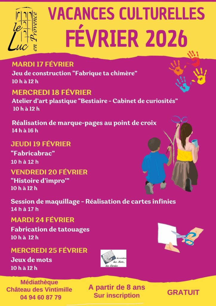 La médiathèque propose, dans le cadre des vacances culturelles, des ateliers du 17 au 25 février.